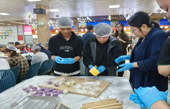 9月“舌尖上的庆师”美食工坊活动期间,文学院积极响应学校号召,组织学生参与美食制作。师生共同开展月饼、饺子制作,采用“理论讲解+现场示范+分组实操”的模式,在师傅指导下,学生不仅掌握了基础烹饪技能,还在劳动中体会到乐趣、感受到饮食文化的魅力,提升了团队协作能力。